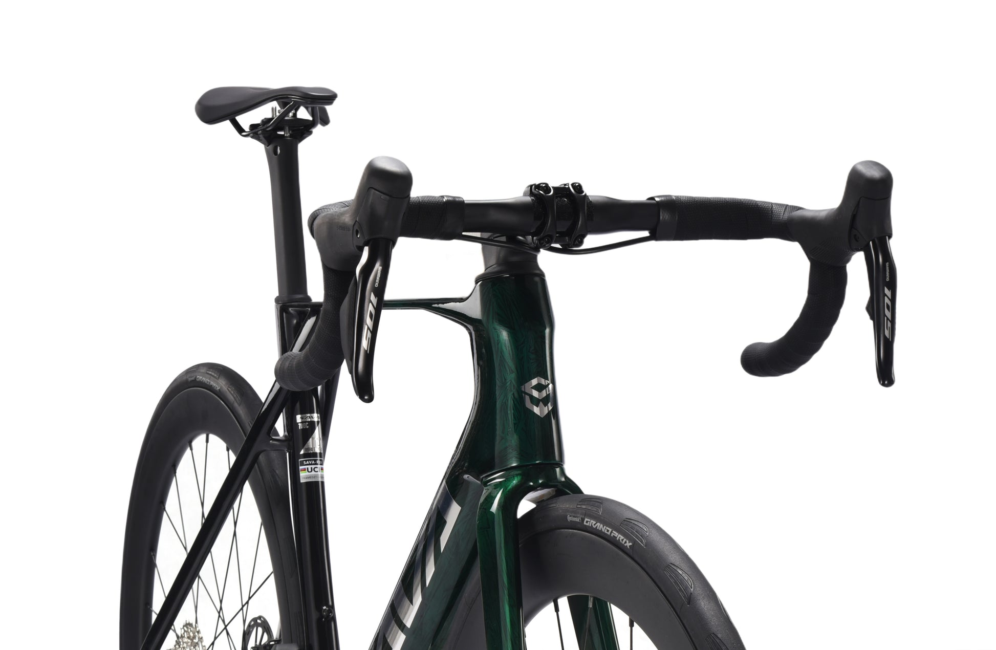 winner's circle. Equipped with Shimano's crazy-good 12-speed 105 Di2 groupset and the same 50mm carbon DB50 wheels as its older siblings, this bike delivers the best aero advantage in the stable at a price that leaves room for your fondo fees.